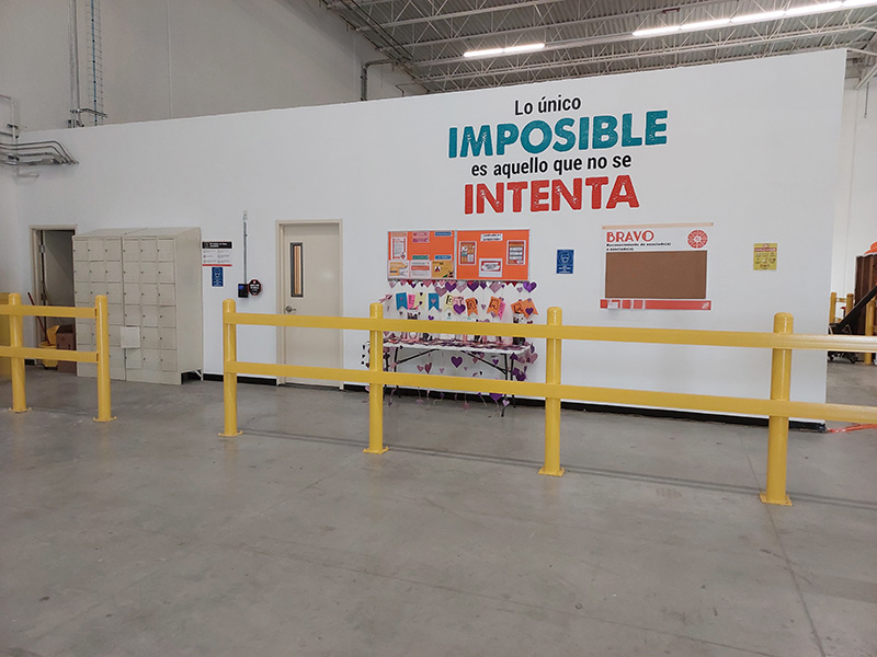 - Construcción de estructura metálica de protección (Barandal perimetral, bolardos en estaciones de trabajo, registros en red sanitaria y eléctrica a base de concreto reforzado y placa antiderrapante, plataforma para entrega de documentación en cuarto de embarques, protección en cargadores de baterías y estaciones de trabajo).