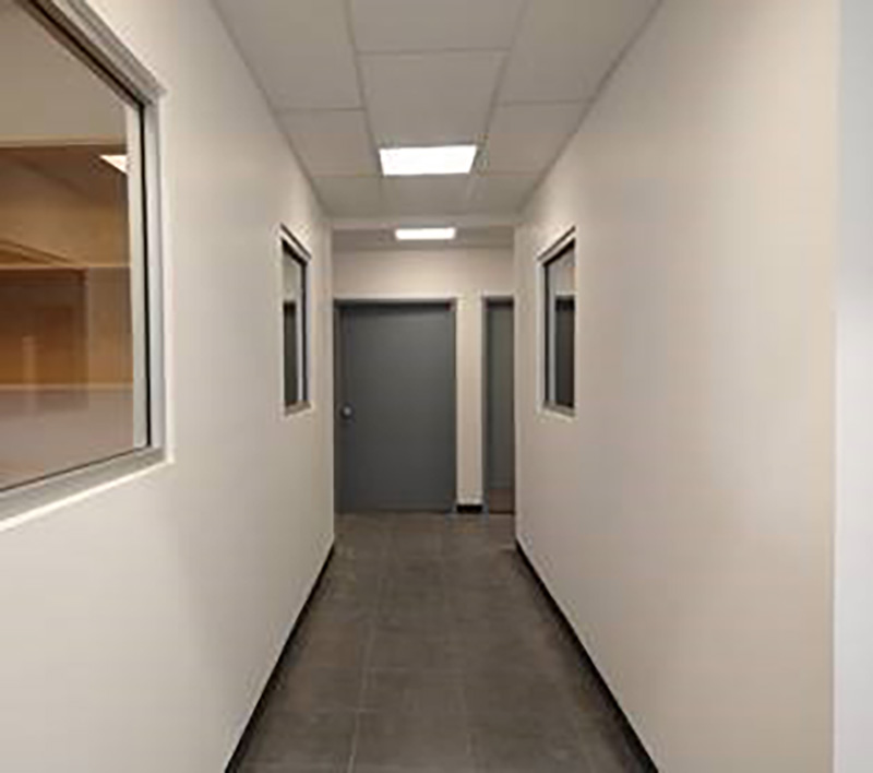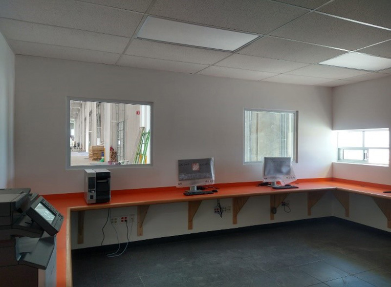- Construcción de oficinas administrativas, comedor, cuarto de embarques, sala adicional, caseta de vigilancia, módulo de sanitarios a base de tablaroca con bastidor metálico, piso cerámico, plafón modular con instalaciones de aire acondicionado.